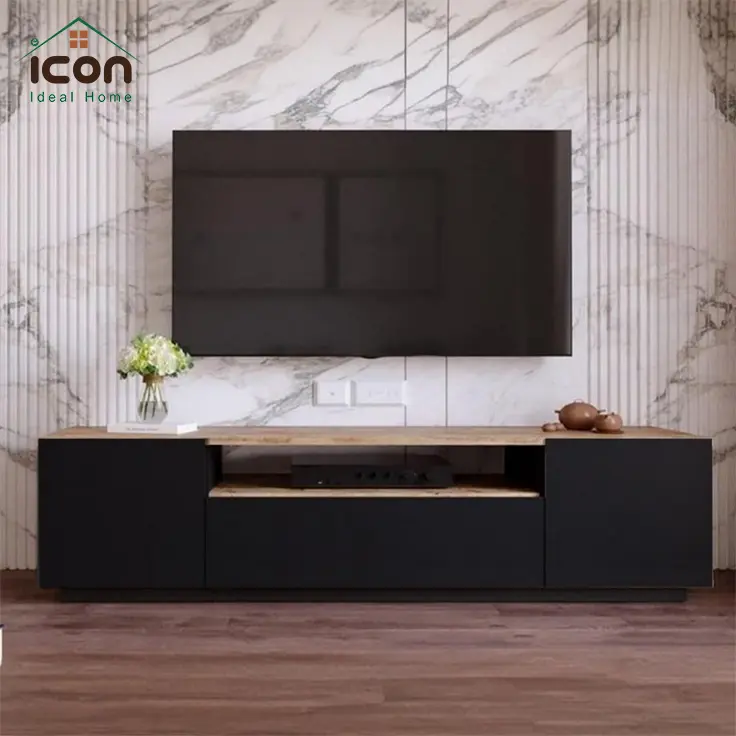ترابيزة تلفزيون مودرن بتصميم بسيط وأنيق، مقاس 180 سم، مناسبة للشاشات الكبيرة، متوفرة باللون الأسود والبيج، ومصنوعة من خامات متعددة تناسب كل الاحتياجات.