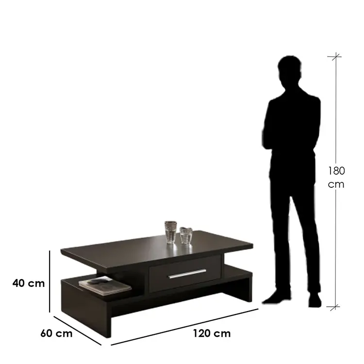 ترابيزة وسط مودرن 120 سم أسود بدرج تخزين | أم دي إف
