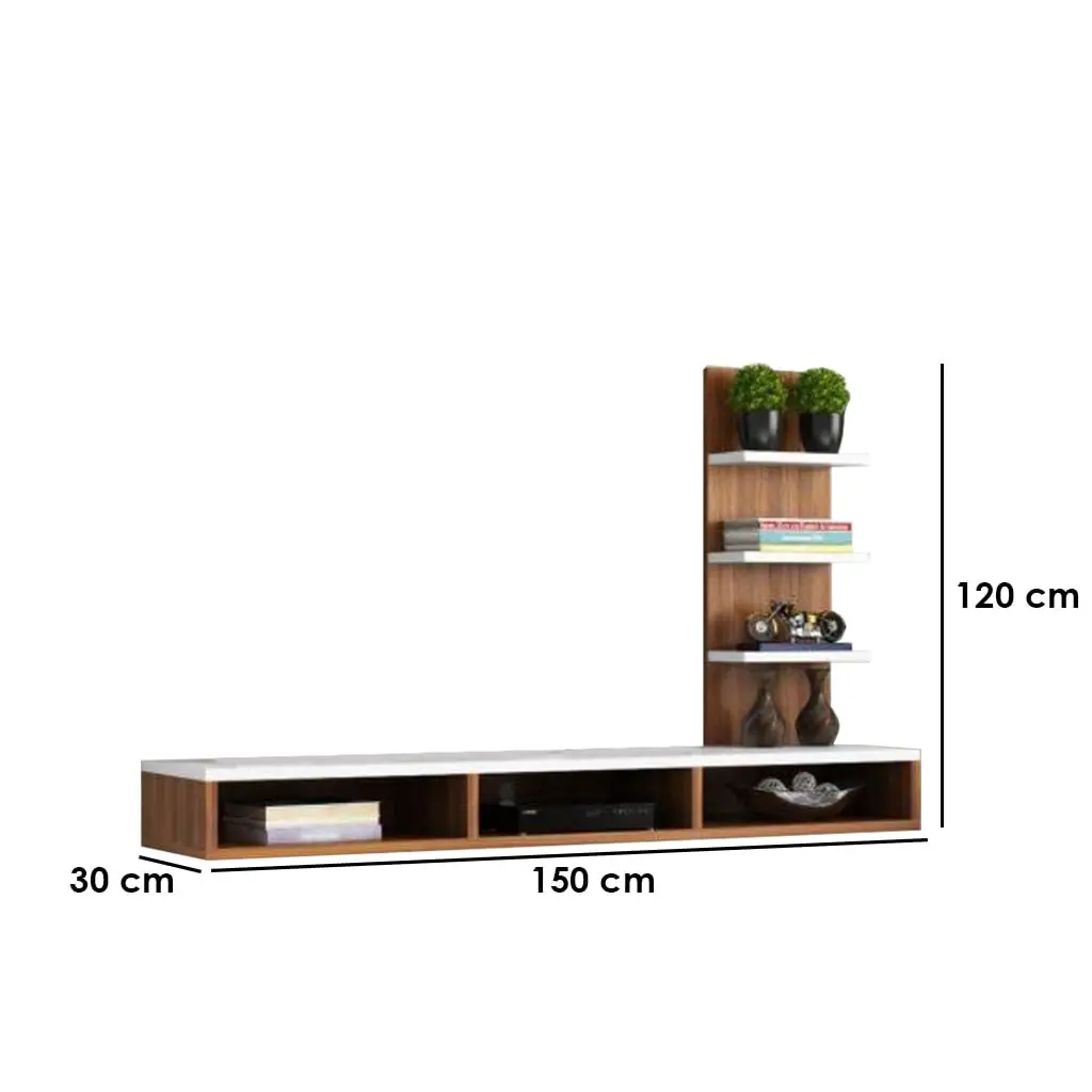وحدة تلفزيون حائط أرفف أفقي و رأسي | ام دي اف ملامين| أبيض و بني | 150×120×30سم